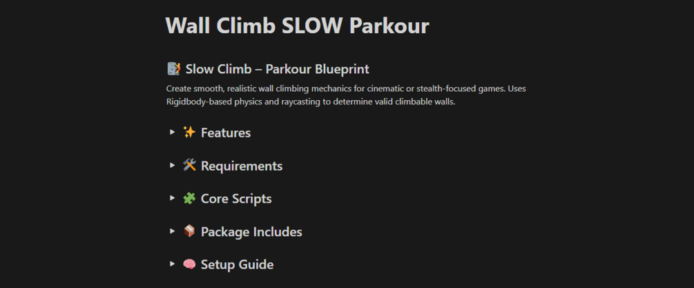 The WALL Climb Mechanic Blueprint from SwiPixel DevTools gives you a plug-and-play solution for Unity 3D—fully compatible with the new Input System. Simply attach the script to your player’s Rigidbody, and CLIMB!...